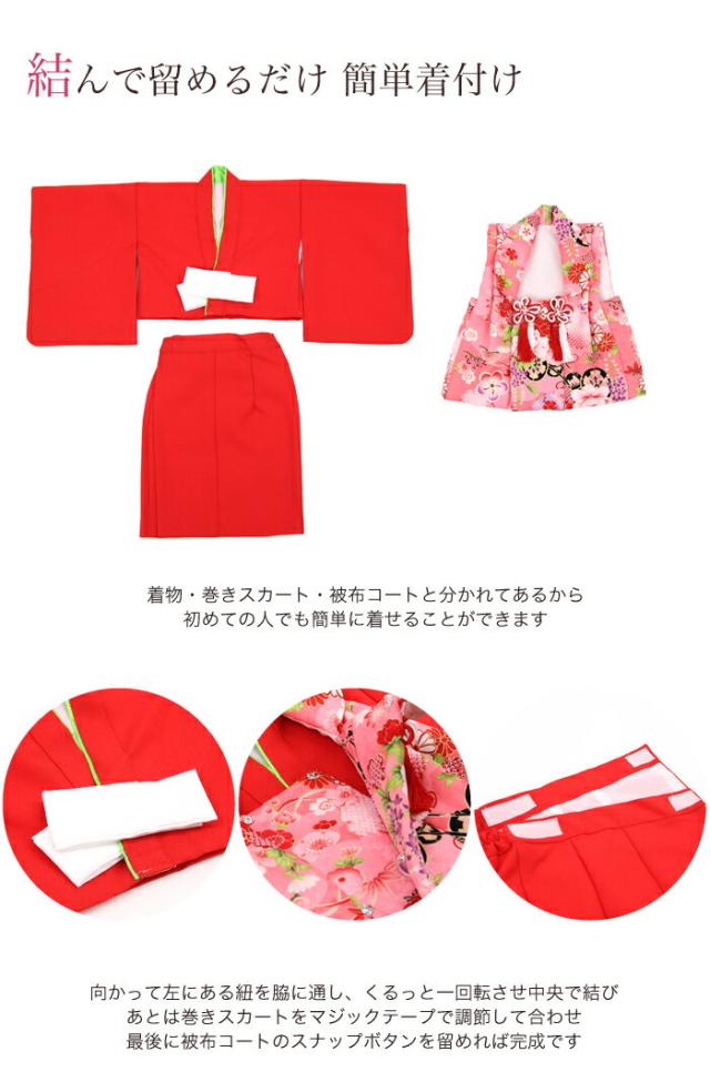 1歳女児用 簡単着付けの二部式着物!初節句・ひなまつり・お食い初めなど…