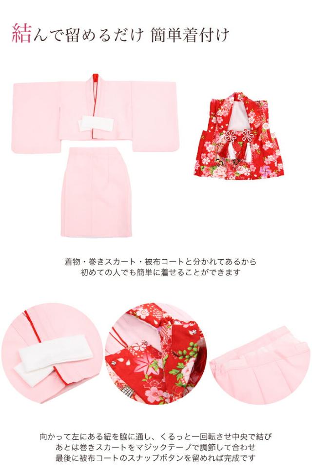 1歳女児用 簡単着付けの二部式着物!初節句・ひなまつり・お食い初めなど…