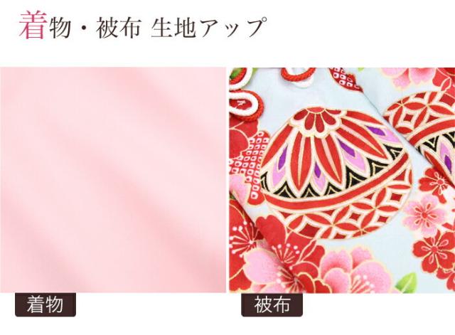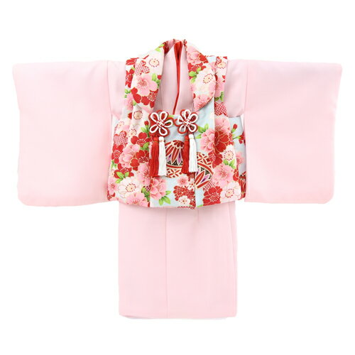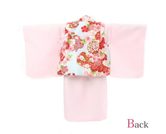 レンタル 女の子 1歳用着物レンタル「ピンク無地着物に水色被布(桜と鞠)」