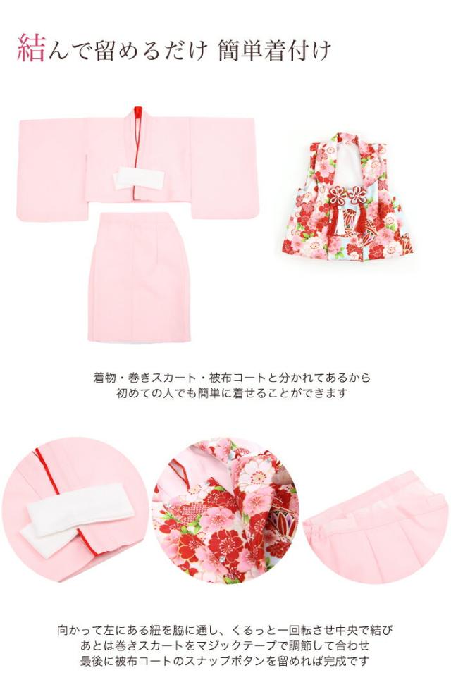 1歳女児用 簡単着付けの二部式着物!初節句・ひなまつり・お食い初めなど…