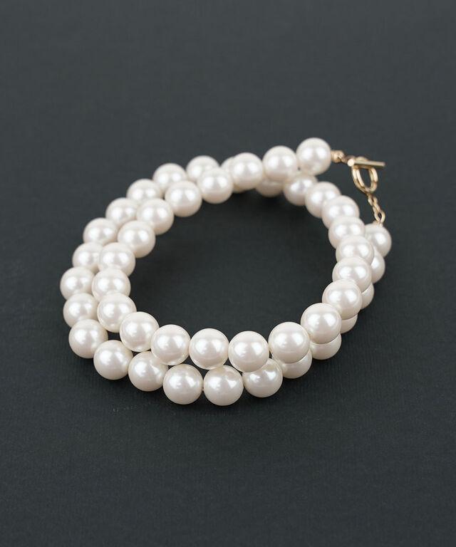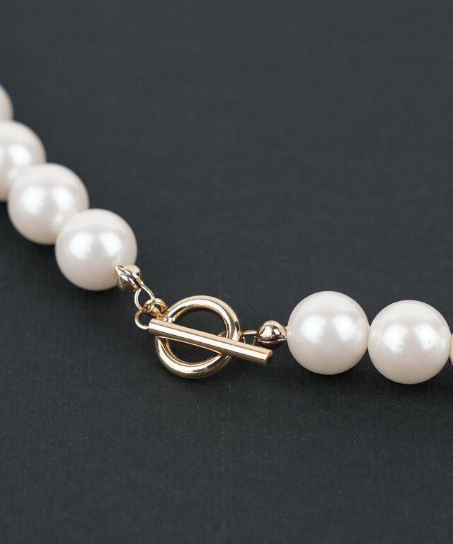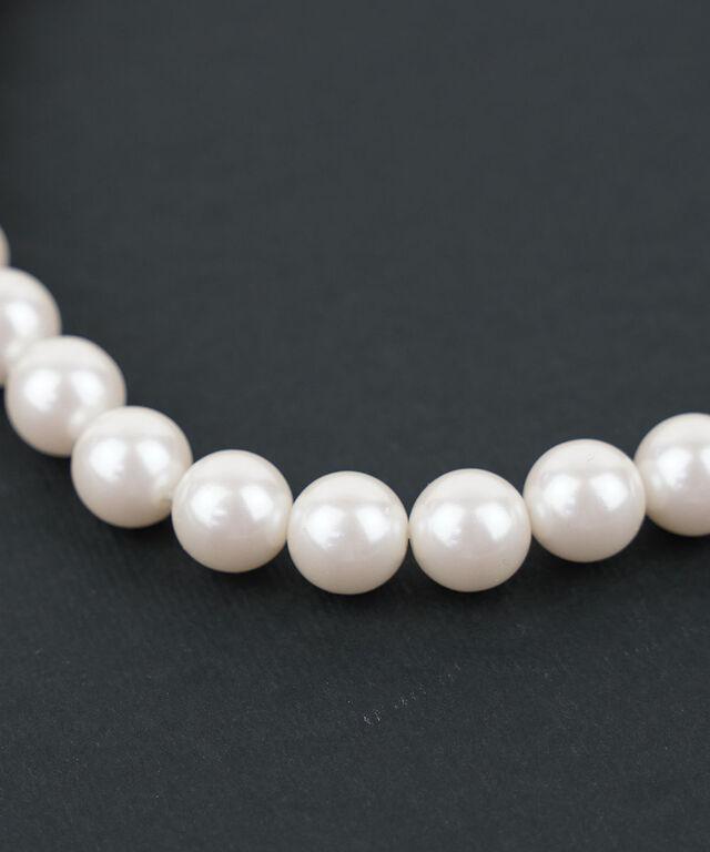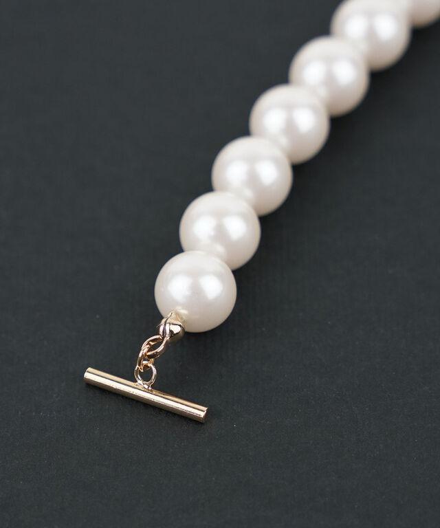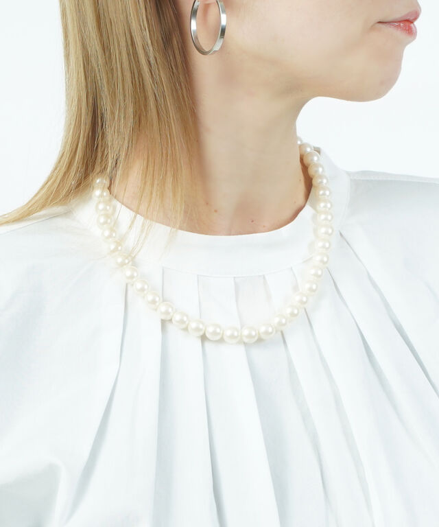 やや大振りのイミテーションパールは、普段のシンプルなコーデに加えるだけでも、