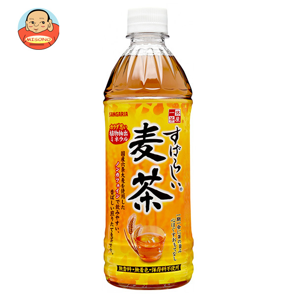 サンガリア すばらしい麦茶 500mlペットボトル×24本入×(2ケース)| 送料無料 茶飲料 麦茶 PET
