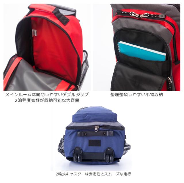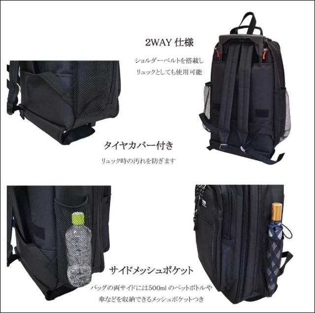 リュックとキャリーの2WAY仕様で使える多機能キャリー。エクスパンダブル機能搭載で容量を33Lから48Lに拡張でき、機内持ち込み対応の軽量モデルです。