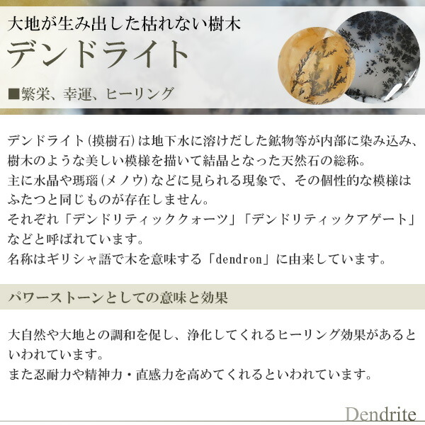 デンドライト(摸樹石)は大自然や大地との調和を促し、浄化するヒーリング効果があるといわれています。