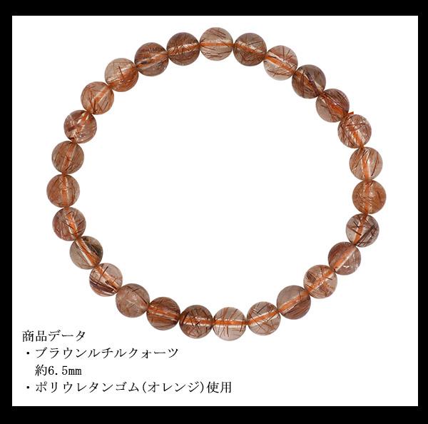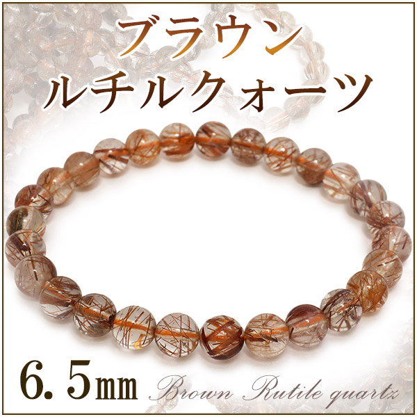 6.5mm 17.5cm ブラウンルチルクォーツ ブレスレット (メンズM、レディースLサイズ) 天然石 パワーストーン 数珠ブレスレット