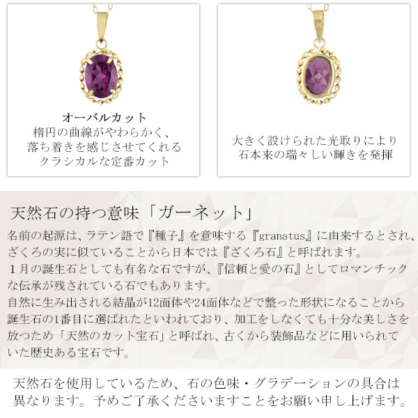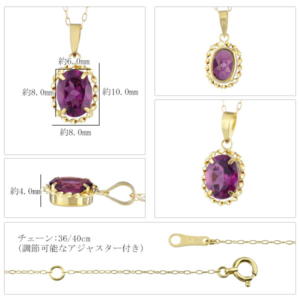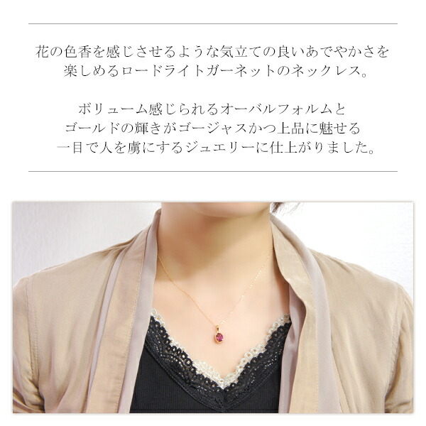 Lucianna K18 天然 ロードライトガーネット オーバル ゴールド ネックレス 18金 K18ゴールド 18k ペンダント 1月 誕生石 天然石 赤紫