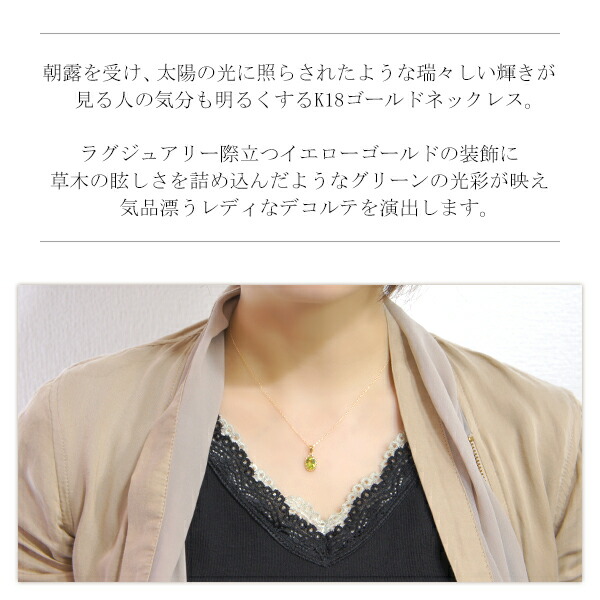 (レディースアクセサリー レディースジュエリー レディースネックレス レディースペンダント ゴールドアクセサリー ゴールドジュエリー ゴールドネックレス ゴールドペンダント 18金ジュエリー 18金ネックレス 18金ペンダント K18ゴールド 18k 一粒ジュエリー ひと粒ジュエリー 一粒ネックレス ひと粒ネックレス 一粒石 ひと粒石 天然石 誕生石 8月の誕生石 8月 ペリドット オリビン オリーブグリーン 緑 黄緑 翠 碧 金色 ゴールドカラー シンプル ベーシック スタンダード 定番 定番人気 シンプル さりげない 上品 キラキラ 高見え 高級感 豪華 大人 大人かっこいい)