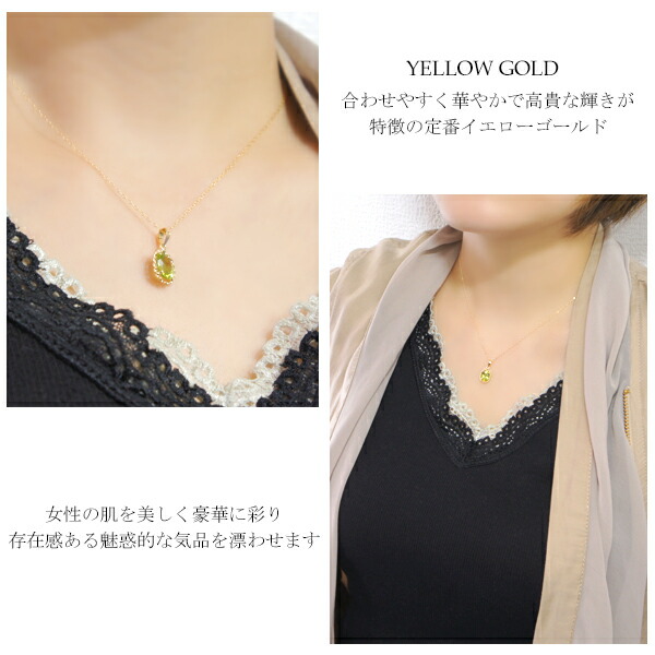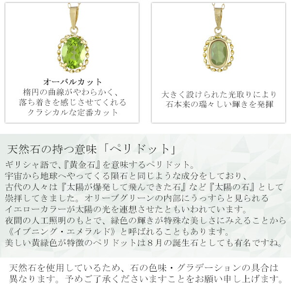 Lucianna K18 天然 ペリドット オーバル ゴールド ネックレス 18金 K18ゴールド 18k ペンダント 8月 誕生石 天然石 オリーブグリーン