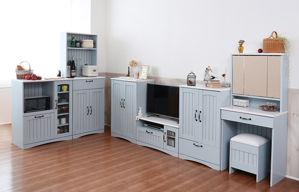 シリーズで揃えてかわいいお部屋にやさしい木のぬくもりに包まれたシリーズです。淡いブルーとホワイトのバイカラーが特徴のフレンチスタイル。優しい素材感と丸みのあるフォルム、甘すぎないデザインはどんなお部屋にもマッチします。