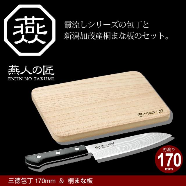 【値下げ】ナイフ セット 桐まな板 三徳包丁 刃渡り 17cm 包丁 ダマスカス/加茂産 日本製 燕三条 燕三 万能包丁 家庭用包丁 文化包丁 キッチン