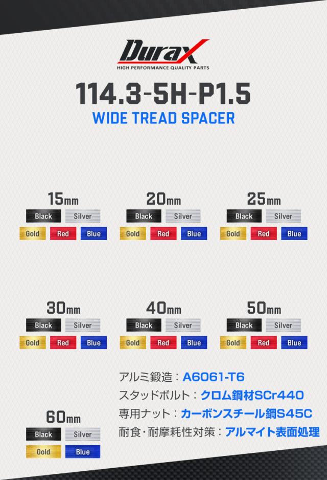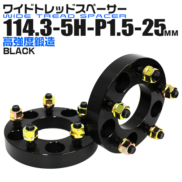 Durax ワイドトレッドスペーサー 2枚セット 25mm PCD114.3 5H P1.5 ブラック ワイトレ ホイール スペーサー ナット アルミ 高強度 軽量 耐腐食 耐摩耗 アルマイト表面処理 ワイドスペーサー 車 タイヤ 5ホール 5穴 人気 おすすめ 送料無料