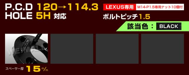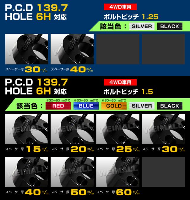 ワイドトレッドスペーサー 15mm PCD139.7 6H P1.5 ホイール ブラック 2枚組6穴