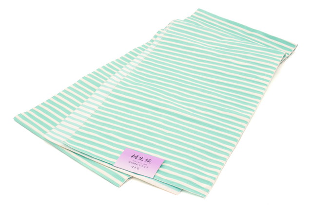 兵児帯 薄緑色 ペールグリーン 縞 ストライプ しじら織り 桐生織 浴衣帯 小紋向き 夏着物向き 夏祭り 花火大会 女性帯 日本製