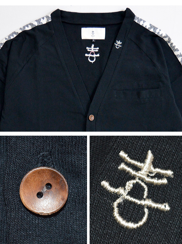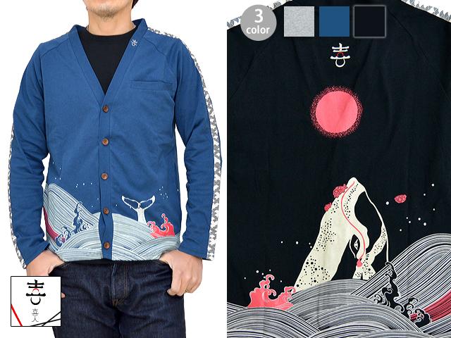 鯨と象さんカーディガン 喜人 和柄 和風 クジラ ゾウ メンズ KJ-71501