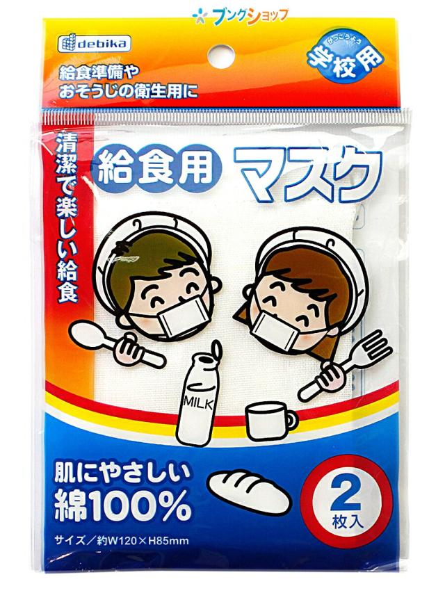 デビカ 給食用マスク 2枚入 143301 debika 学校 児童 生徒 きゅうしょくマスク 給食準備 おそうじの衛生用 学童用給食マスク 肌にやさしいマスク 綿100%2枚入マスク 清潔で楽しい給食