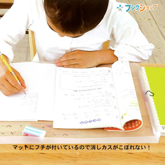 マットの下に敷く滑り止めシートが付属しており、作業中にずれにくく安定感があります。消しゴムカスが散らばりにくいフチ付き構造