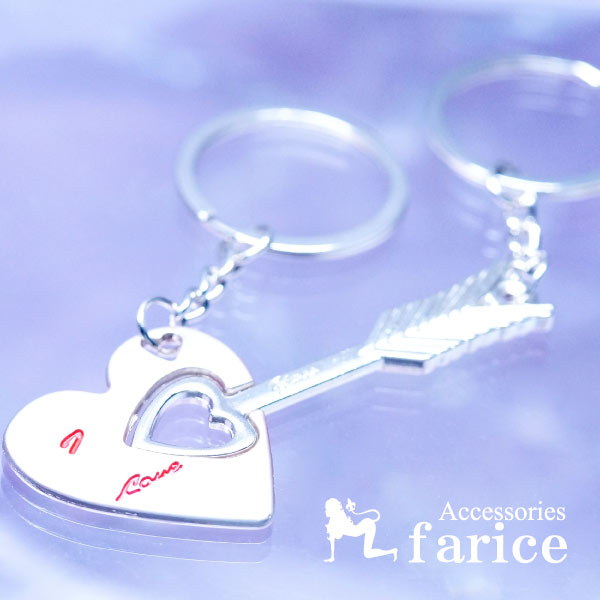 ★人気定番中の定番!ハート&キューピッドアロー(天使の矢)デザイン・二個一組のペアキーホルダー♪