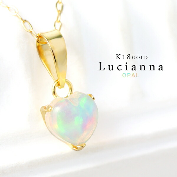 Lucianna K18 天然 プレシャスオパール ハート ゴールド ネックレス 18金 K18ゴールド 18k ペンダント 10月 誕生石 天然石 オパール