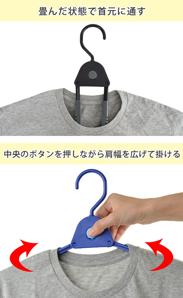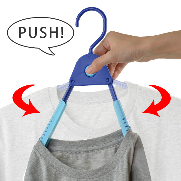 ![]() 首元を伸ばさずにシャツが掛けられる!ハンガーを衣類に通してから広げて掛けられるので、衣類の首元を伸ばしません。 ワンプッシュでサッと外せる!中央のボタンをワンプッシュするとアーム部分がサッと畳まれるので、洗濯の取り込み時もハンガーからすぐに外せます。 ![]() | ||