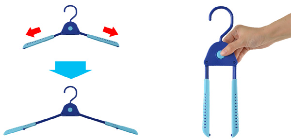 | サイズ調整が出来る 肩幅がスライドするので、衣服に合わせてサイズ調整が出来て型くずれを防ぎます。(肩幅38cm〜52cmまで対応) | ◇ | 持ち運びに便利 畳むとスリムになるので、旅行や出張など持ち運びに便利! |