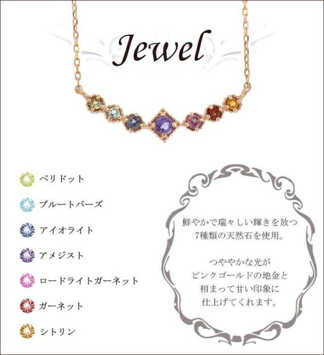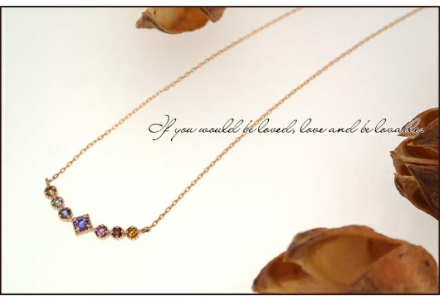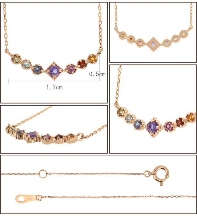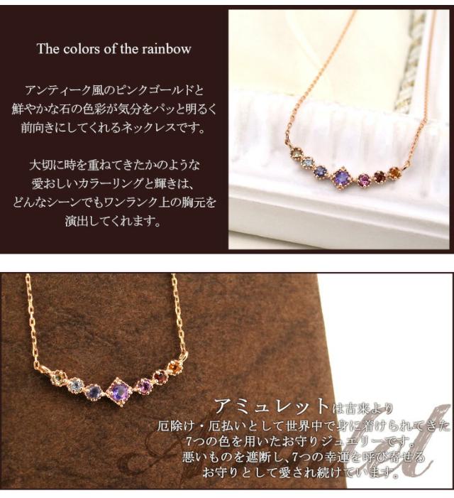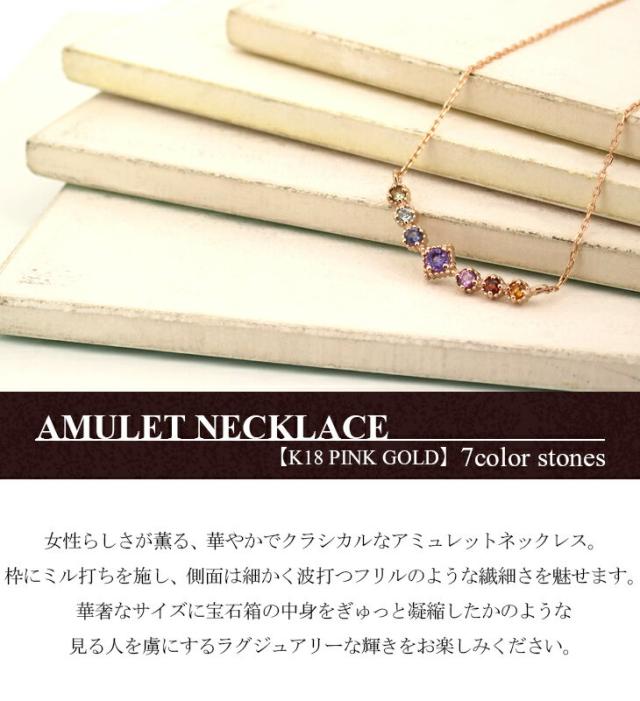 K18PG 7カラー ストーン アミュレット ネックレス/送料無料 18金ネックレス レディース ピンクゴールド