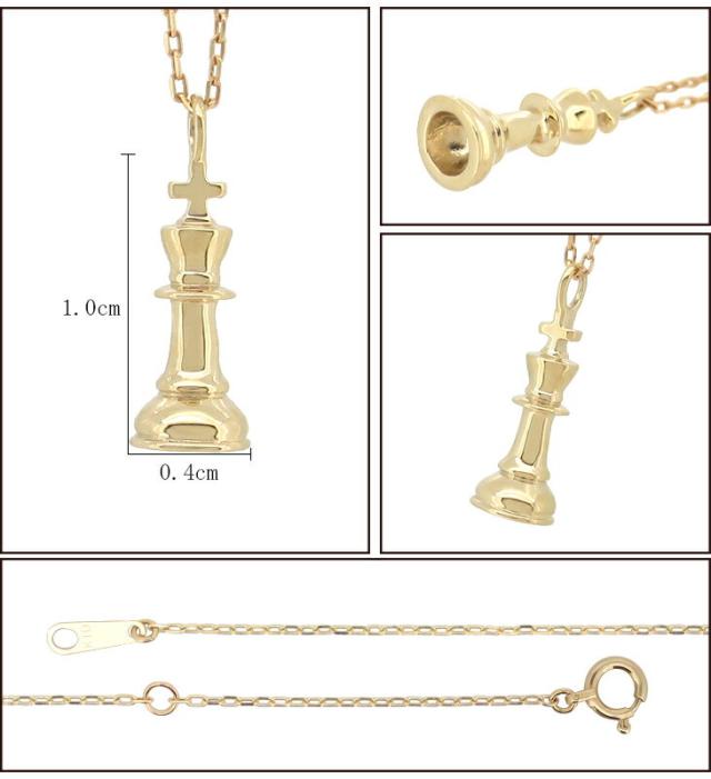 K10 10金 ネックレス シンプル チェス 駒 キング ゲーム 上品 カジュアル