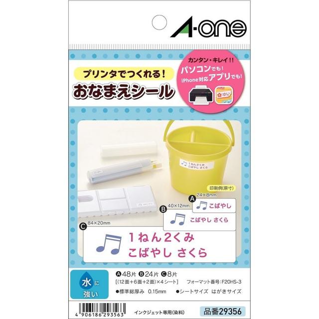 お名前シール 多面付/シートサイズ:はがきサイズ(100mm×148mm)/ラベルサイズ:24mm×8mm 40mm×12mm 84mm×20mm