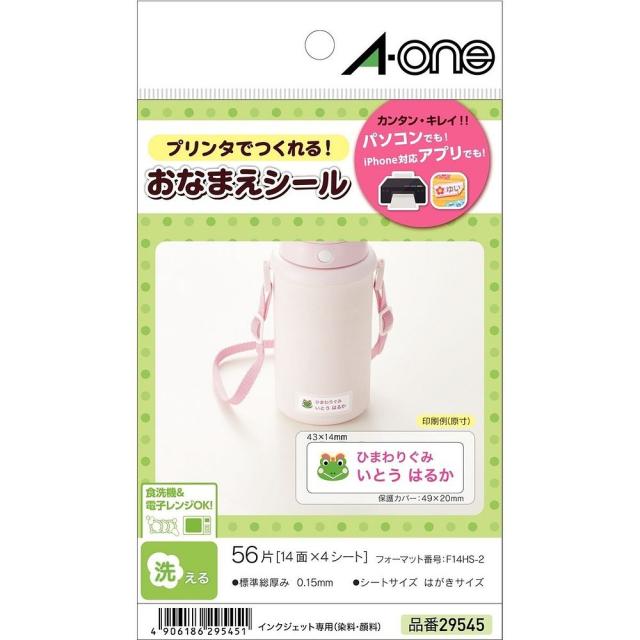 【メール便発送】エーワン 洗えるおなまえシール 14面 4枚 29545