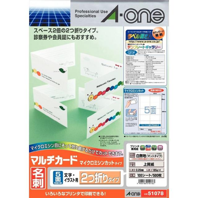 エーワン マルチカード 名刺2つ折り 5面 500枚分 51078 【北海道・沖縄・離島配送不可】