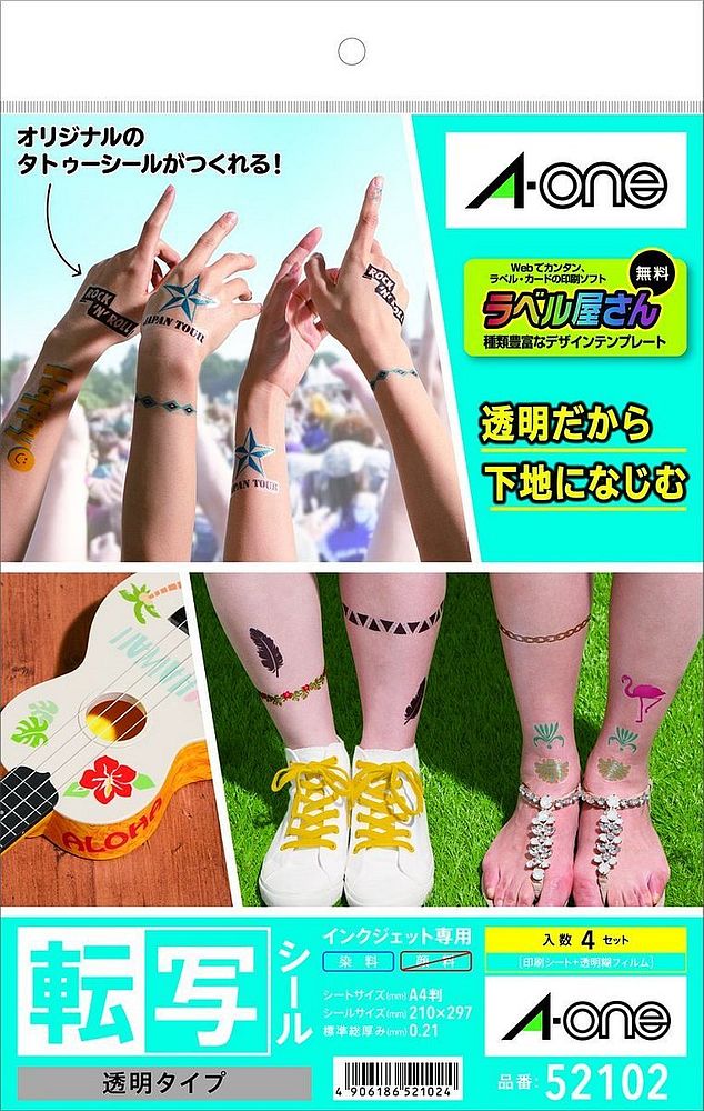 (まとめ買い)エーワン 転写 タトゥーシール 透明 4枚 A4 52102 〔×3〕 【北海道・沖縄・離島配送不可】
