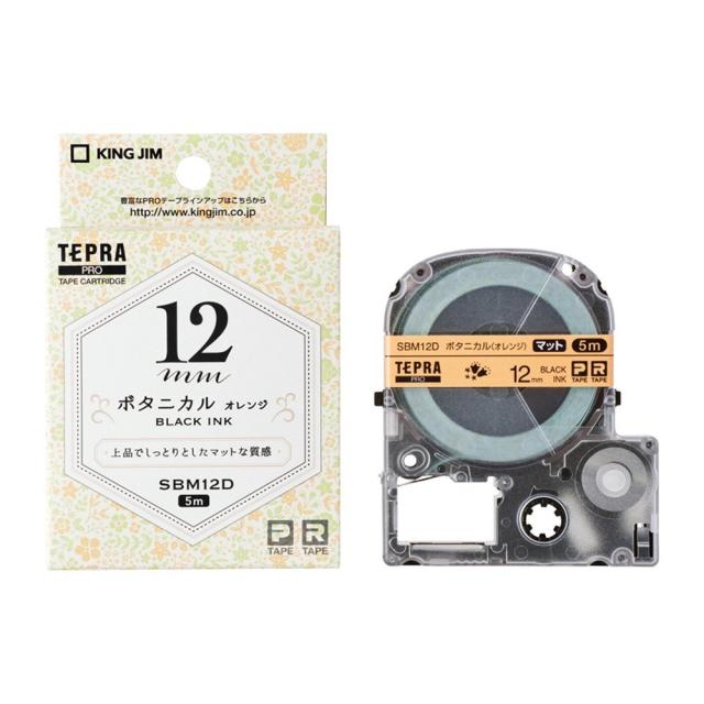 (まとめ買い)キングジム テプラPRO テープカートリッジ マットラベル(模様) 12mm ボタニカル(オレンジ) SBM12D 〔3個セット〕 【北海道・沖縄・離島配送不可】