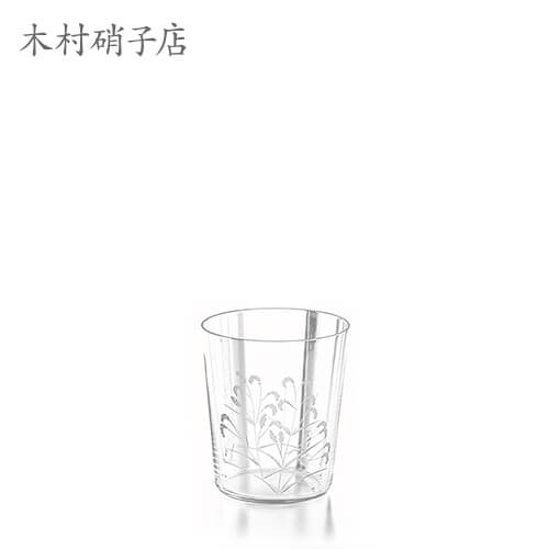 江戸切子伝統工芸士の根本幸雄氏デザインの切子のグラス。極薄のグラスには、春蓼(はるたで)が繊細なカットで表現されています。