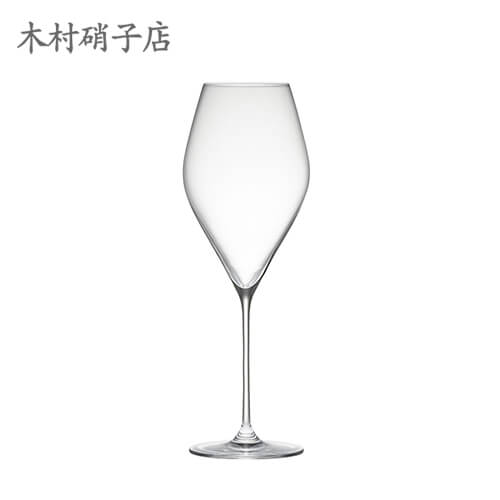 木村硝子店のロゴの入ったマシンメイドのグラス。背がスラリと高く、比較的に大ぶりなグラスです。マシンメイドとは思えぬような細いステムのデザインを実現したツルシリーズ。口元も薄手に出来ていて心地よい飲みくちとなっています。RONA(ロナ)社の商品ですが、木村硝子店のオリジナルとしてロゴを入れ販売しています。