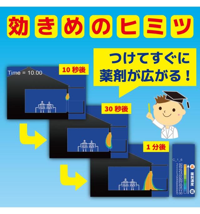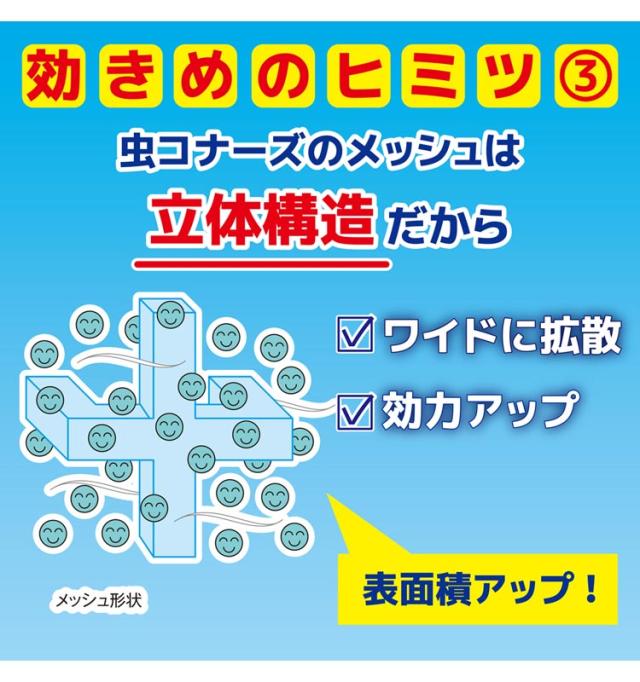 (1)立体構造で表面積を拡大!ワイドに薬剤が広がる。効力アップ!(当社比)