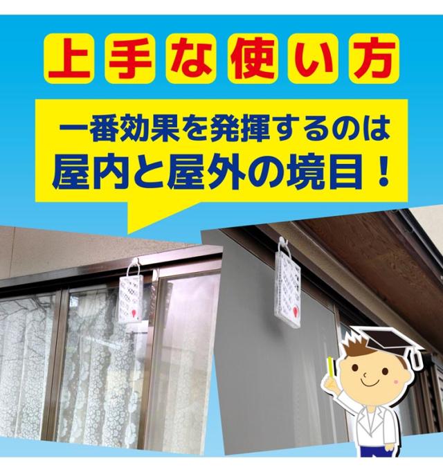 効果がみられない場合は設置場所を変えるか、又害虫が大量に飛来する場合は殺虫エアゾールと併用してください。