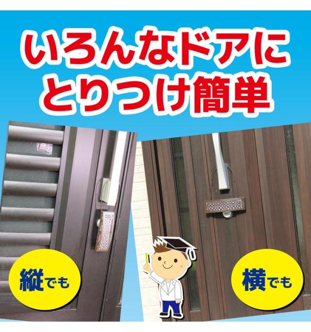 ・玄関用については、強風時など本品が激しく揺れると、ドアの素材によっては傷つける恐れがありますので、その際は一旦本品を外してください。