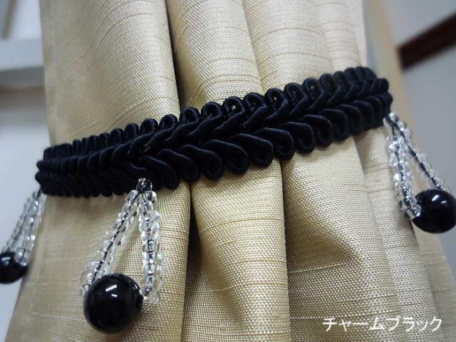 デザインカーテンタッセル チャームブラック・レースピンク(2本入り)