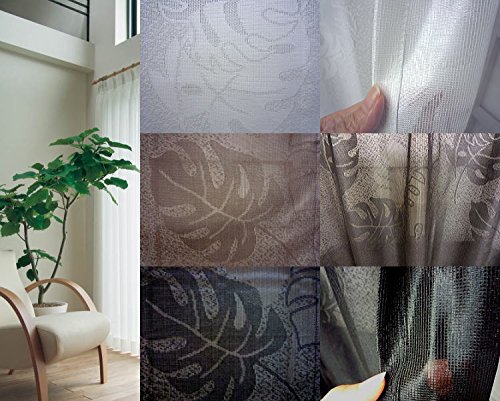 【日本製】カーテン モンステラ柄 超形状記憶加工 ミラーレース UVカット【モンステラ】ハワイアン ボタニカルインテリア アジアン 葉柄 ブラック ホワイト ブラウン ボタニーク