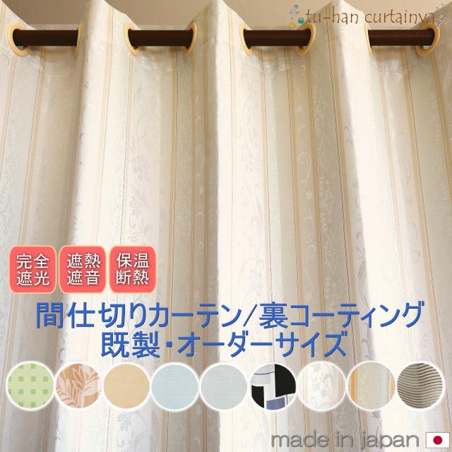 【送料無料】日本製 間仕切りカーテン ハト目カーテン 完全遮光カーテン つっぱり式 断熱 遮熱 UVカット 裏コーティング12柄【幅145cm×丈既製サイズ】1枚入り