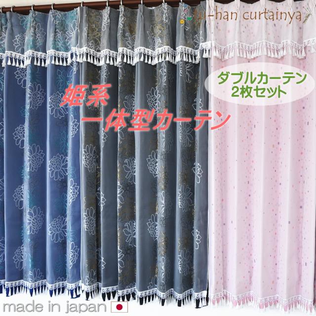 【二重カーテン】カーテン 姫系 遮光カーテン 一体型 フリルカーテン おしゃれ 姫 二重カーテンレース 可愛い【レース飾り/裾ロングフリル】形状記憶 フロントレース ボイルレース ダブルカーテン タッセル付き 遮熱 断熱 仕切り かわいい 子供部屋 無地 目隠し