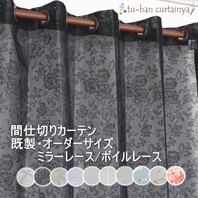 日本製 カーテン 間仕切りカーテン ハト目カーテン つっぱり式 ミラーレース ボイルレース【幅145cm×丈既製サイズ】1枚入り おしゃれ 突っ張り棒カーテン 仕切りカーテン レース ボイル ブラック ホワイト