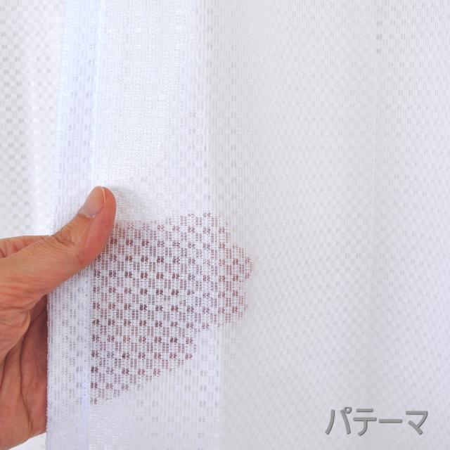 ●パテーマはシンプルはデザイン。高白色ホワイトのミラーレースカーテン。どちらも透け感があります。
