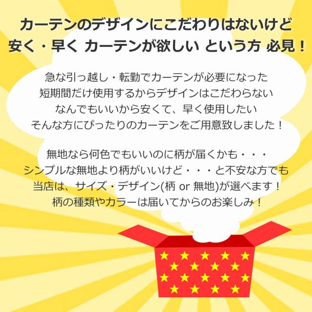 【当店お任せカーテン】ワゴンセール 届いてからのお楽しみ ドレープカーテン カーテンガチャ 既製サイズ サイズ豊富 即納 送料無料 リーズナブル お任せ お手頃 福袋 ガチャ 特価 お買い得 ランダム アジャスターフック・タッセル付き 柄 無地 日本製