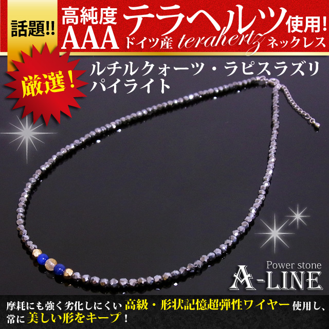 送料無料 ネックレス 高純度AAAテラヘルツ&ルチルクォーツ&ラピスラズリ3mm PW-3084