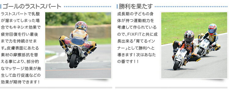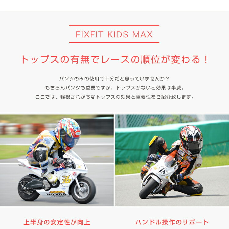 毎年いくつものレースが開催されていますが、"FIXFIT JUNIOR" はサーキットでライバルやタイムアップと戦うキッズ達の意見を取り入れ開発されました。