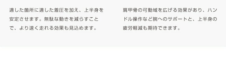 筋肉のサポート、疲労軽減効果、服装をより快適にするなど、さまざまな効果が期待でき、集中力を高め、スタミナアップにも貢献します。