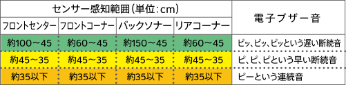 ※安全のためセンサー使用時も直接目視で周辺の安全確認を行いながら運転してください。