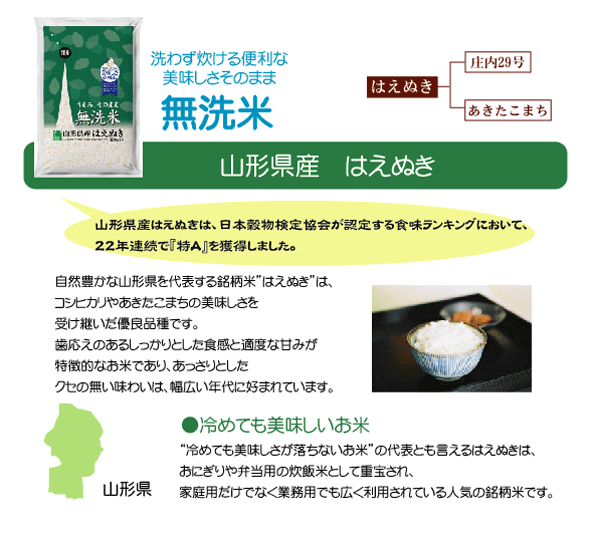 ■冷めても美味しいのでお弁当にピッタリ!無洗米山形はえぬき300g