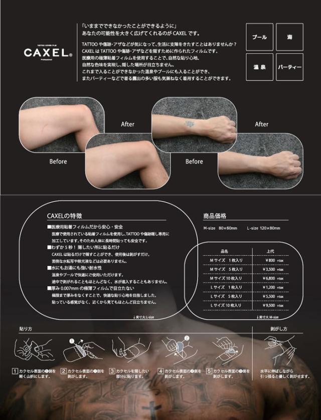 【正規販売店】CAXEL(カクセル)シール L 5枚入り(メール便送料無料)>>タトゥー 隠し 医療用粘着剤シール TAT 刺青 TATTOO 温泉 プール 海 ゴルフ