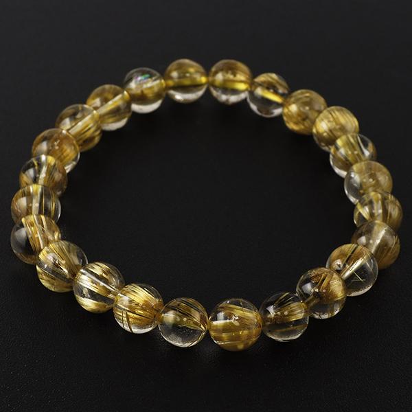8.5mm 19.5cm 最高級 10Aグレード タイチンルチルクォーツ ブレスレット(メンズL、レディースLLサイズ)